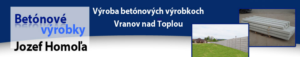 Naša firma sa špecializuje na výrobu betónových výrobkov. Naše produkty sú betónové stĺpiky, betónové ploty a betónové žľaby. Výhodou našich betónových výrobkov nie je len dobrá cena, ale aj dlhá životnosť. Všetky naše výrobky sú vyrobené z kvalitného betónu, ktorý sa vyznačuje dlhou trvanlivosťou a odolnosťou voči mrazu. Přesvěčte sa a sami vyskúšajte